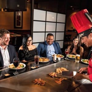 Skilled Teppanyaki chefs will artfully prepare the complete meal at your Hibachi table to your specification as they entertain with skills and humor.